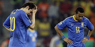 Chegou ao fim a participação da seleção brasileira na Copa do Mundo da África. A Laranja Mecânica liderada por Robben e Sneijder bateu o Brasil de virada por 2x1 e mandou os brasileiros mais cedo pra casa. A seleção fez um primeiro tempo impecável neutralizando o time holandês e abriu o placar com o passe desenhado de Felipe Melo pra Robinho que fulminou a rede. Porém no segundo tempo, a seleção brasileira mais evangélica de todas sucumbiu perante o futebol objetivo e pragmático da Holanda, que tocou na ferida da zaga brasileira, a jogada área. O primeiro gol foi contra de Felipe Melo e saiu aos 8 minutos após cruzamento na área com Júlio César dando murros no ar. Pela primeira vez na copa nosso goleiro falhou. O segundo foi após um escanteio que culminou no gol de cabeça de Sneijder, totalmente livre na área. Logo depois do segundo gol, a seleção brasileira ficou sem poder de reação e se descontrolou em campo com a expulsão de Felipe Melo, o vilão. Dunga já expressava um nervosismo desnecessário ainda no primeiro tempo, e no intervalo deve ter passado toda essa instabilidade ao time. Apesar de todo esforço do time brasileiro, a Holanda venceu o jogo e se classificou com justiça para as quartas de final. Com um time mais unido e brioso, esse Brasil de 2010 até que chegou longe nessa copa, todavia limitou-se a um futebol mais alemão do que brasileiro e se mostrou pouco audacioso e criativo. Dunga aplicou nessa seleção todas as fichas, apostando num estilo de jogo que não é o nosso, convocando jogadores limitados e inexpressivos. E mais uma vez fica a lição de que o futebol brasileiro deixou de ser o melhor há muito tempo e não poderemos jamais subestimar os adversários, ainda mais a Holanda que já tinha disputado uma eliminatória brilhante. Os mesmos erros foram repetidos e a prepotência e arrogância permanecem. Enquanto nós brasileiros não tivermos a humildade de admitir que nosso futebol “já era”, cometeremos os mesmos erros. Está na hora do Brasil acordar e parar com essa história de país do futebol. Se for mesmo o país da gorduchinha, como num passado distante foi, não será jamais se também não mudar seus cartolas e mandar esses manda-chuvas pro espaço. Até quando o “santo” Ricardo Teixeira ficará no comando da CBF. Será que nem Deus o tirará de lá? A escolha de um técnico como Dunga foi errônea, tendo-se que o ex-jogador nunca trenara nenhum equipe antes da seleção. Que espécie de experiência sendo técnico Dunga teve? Seu descontrole emocional numa situação difícil mostrou o total despreparo de quem deveria estar mais preparado, o técnico. Na próxima copa, que será disputada aqui no Brasil, é que veremos se está influência do presidente da CBF é benéfica para o futebol brasileiro. Acorda Brasil, o sonho acabou e a eleição está por vir. O ópio acabou e o que sobrou foi só tristeza de um povo que se entorpece e esquece de lutar pelos seus direitos. A hora é agora. Chega de futebol um pouco gente. Acorda Brasil.